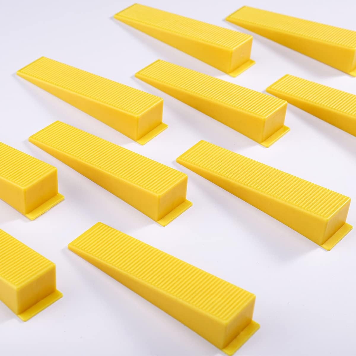 500 Pcs Reusable Leveling Wedges, Tile Leveling System Wedges For 1/8″ spacers, 1/16″ spacers, 1/32″ spacers and Tile Leveling System Kit,for Tile Leveler Installation (500, Yellow)