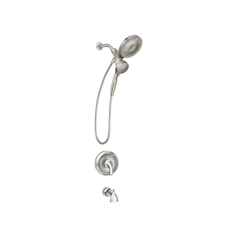 Moen Engage Magnetix Spot Resist Brushed Nickel Multi-Function Handshower and Rainfall Shower Head Trim Combo with Shower Handle, Tub Spout, Metal Hose and Valve, 82304SRN