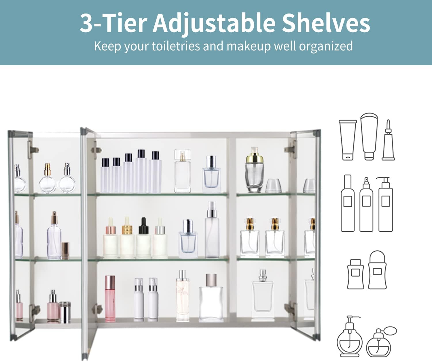 - [MULTIFUNCTIONAL & EASY TO USE] The mirror cabinet can be perfectly used in the kitchen, bedroom, living room, and small spaces to organize your sundries and other objects. 3-tier shelves help keep everything in order.