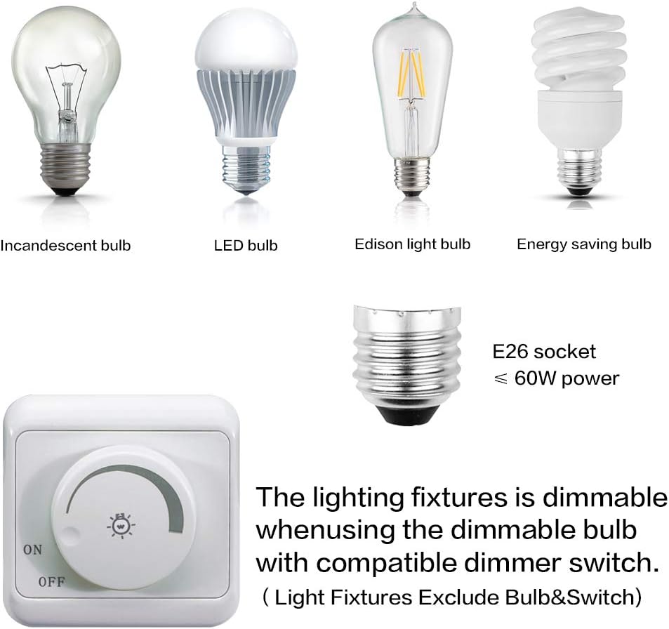 - Compatible with Incandescent, LED, CFL, and Halogen Bulbs. Perfect fit in retro-vintage or modern styles decorates. Can be installed up or down to suit your needs. Not just a bathroom and vanity area, but also a great choice for a loft, bedroom, dining room, corridor, Etc.